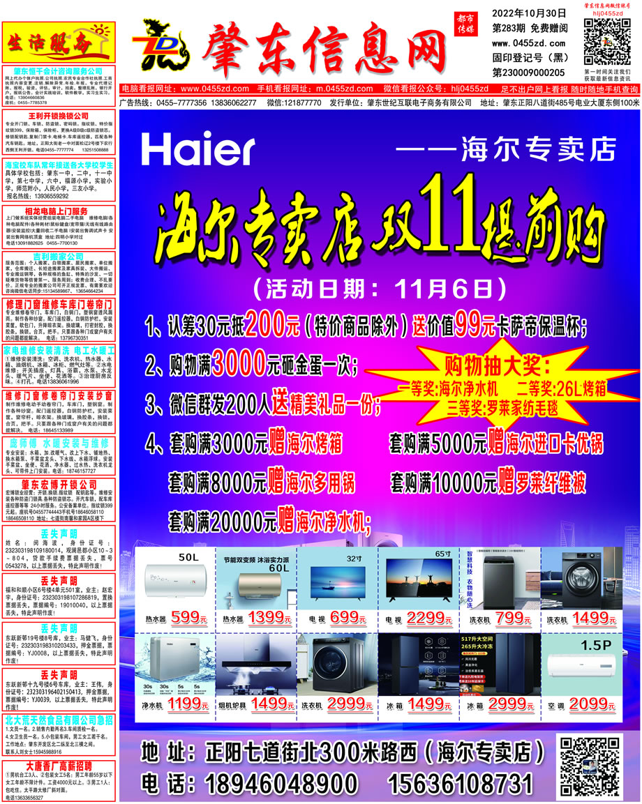 肇東信息網DM報紙2022年10月30日第283期
