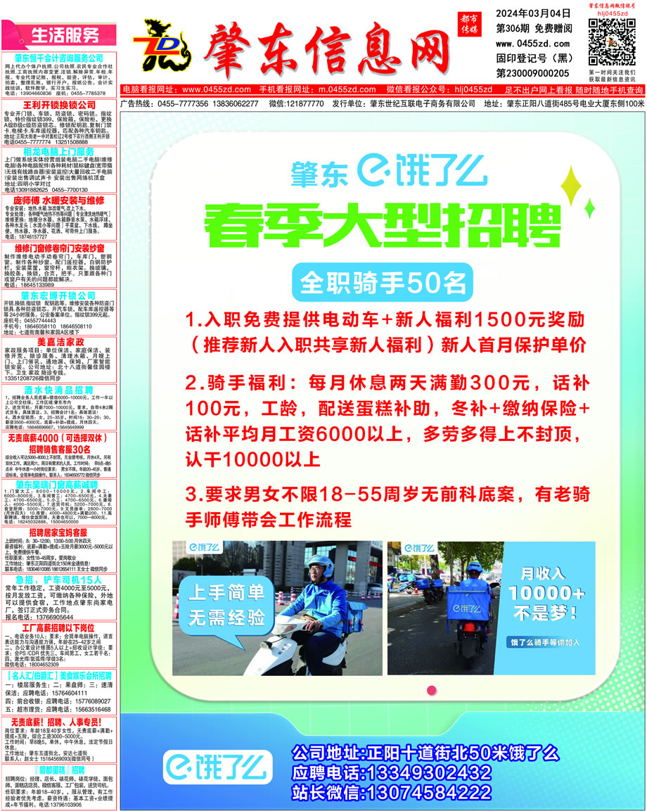 肇東信息網DM報紙2024年3月4日第306期