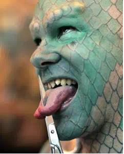 舌頭分叉,頭上長犄角,眼白通紅,人身狗臉,這不都是傳說中的妖精嗎?今天我們就來盤點(diǎn)一下國外奇葩整形,看看你的心理承受能力有多強(qiáng)?