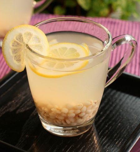 6.關火后靜置,涼至60度以下時把薏米水盛入容器,加切片的檸檬,蜂蜜適量拌勻即可。