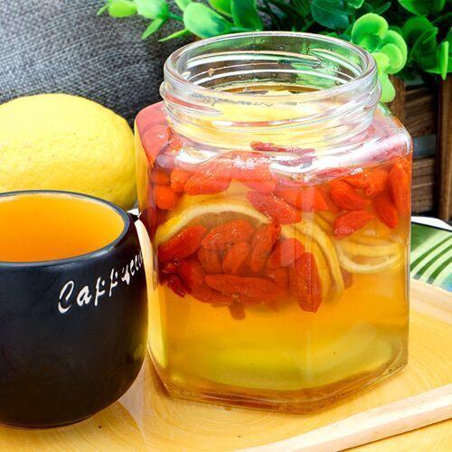 3.鋪上一層檸檬,然后放入適量枸杞、冰糖、蜂蜜。